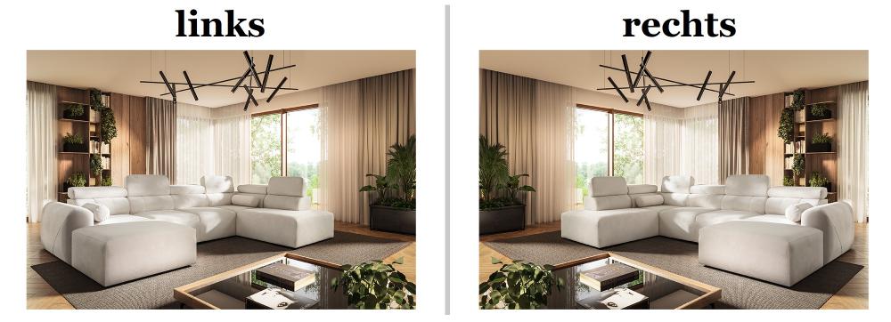 Im ersten Schritt wählen Sie bitte die Anordnung des Ecksofas, die Ihnen zusagt. Im zweiten Schritt wählen Sie den Stoff für Ihr neues Sofa und die Zierkissen.